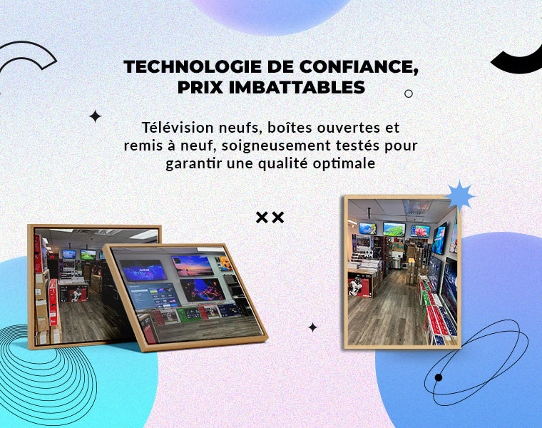 - Large gamme de marques de confiance à des prix compétitifs. - Téléviseurs remis à neuf inspectés et certifiés. - Service client personnalisé et fiable. - Garantie et support après-vente adaptés à vos besoins. - Achats faciles et sécurisés en ligne et en magasin.